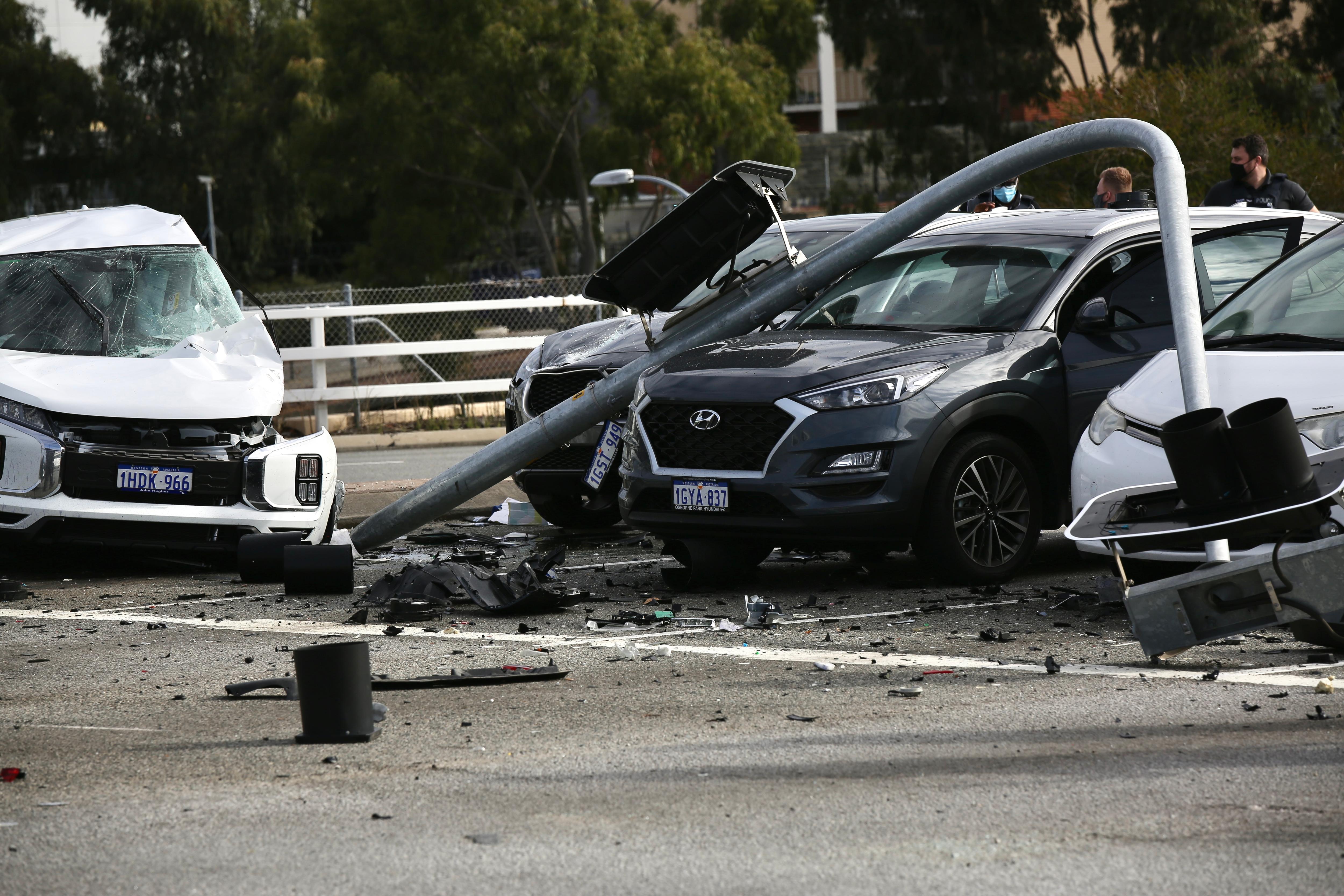 Car Pursued By Police Smashes Into East Perth Traffic Light Pole Causing Multi Vehicle Crash Abc News